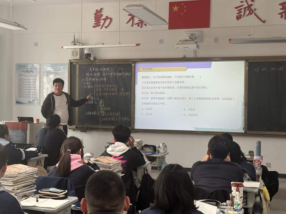 柳钧杰老师通过清晰的讲解和实例演示,帮助学生理解简单随机抽样的定义、特点及操作方法。课堂互动良好,学生积极参与讨论和练习,能够掌握抽样的基本步骤和注意事项。课堂内容扎实,教学方法有效,展示了当前教考衔接背景下优质数学课堂的风采。