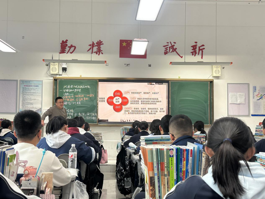王宁老师以视频作为导入并串联整节课,王老师分析了苏联共产党失去执政地位的原因以及带给我党的启示,结合视频分析具体事例,找出全面从严治党的措施和要求,最后总结巩固党的长期执政地位的重要路径。王老师提出了锻炼学生思维能力的问题链,体现了以学生为主体,既完成了重难点的突破,又提升了学生的学科核心素养。