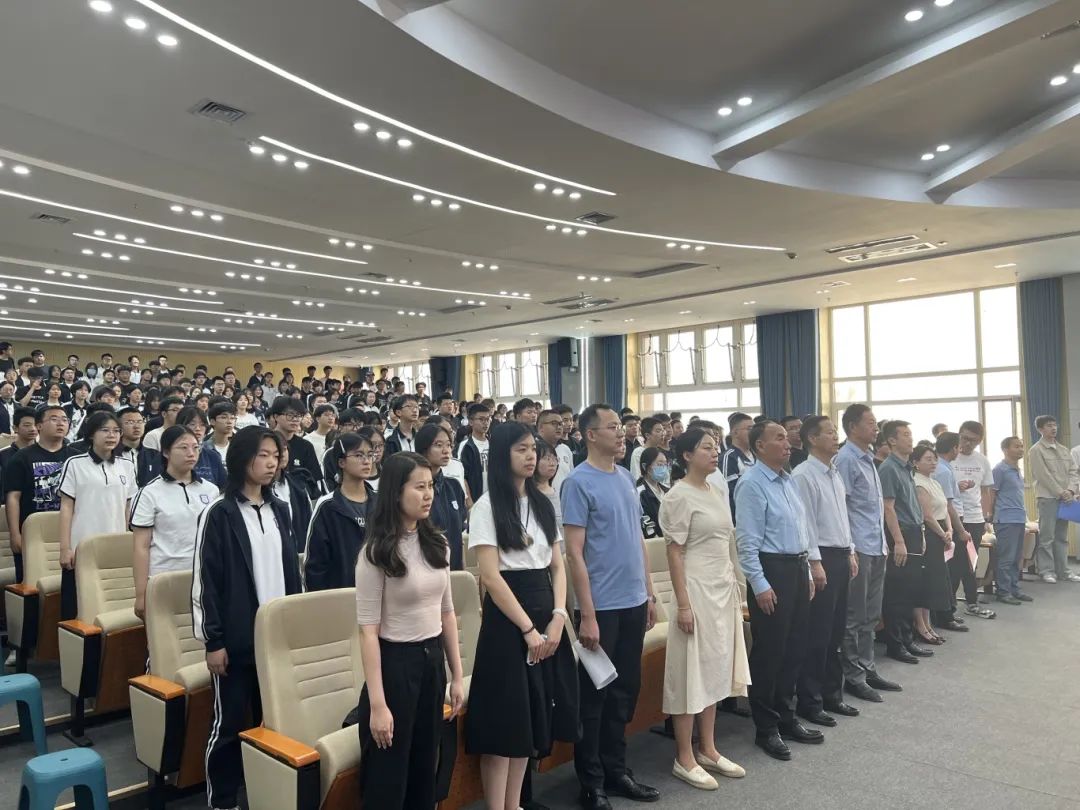 表彰大会在庄严的国歌声中拉开帷幕,高一年级全体师生奏唱国歌,共同见证荣耀时刻。