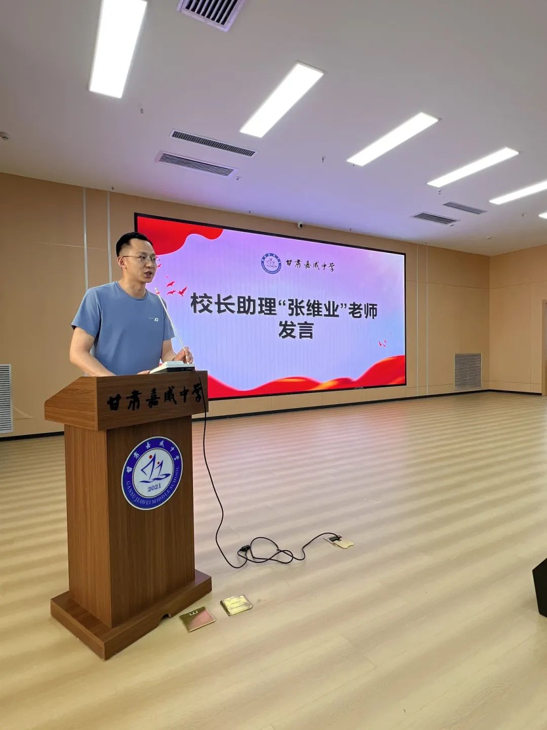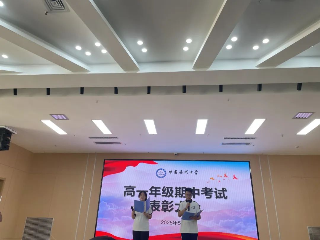 夏风执笔,镌刻奋斗的足迹;时光为证,定格成长的荣光。2025年5月19日下午,甘肃嘉威中学高一年级举行了2024-2025学年第二学期期中考试表彰大会。甘肃嘉威中学党总支书记、校长贾金元,副校长丁瑶,党总支副书记王行高,校长助理程国山、张维业、胡牛子,教务中心主任董娟,学生工作中心主任郭正丹,团委副书记杨海琼,高一年级班主任和高一全体学生参加了本次表彰大会。