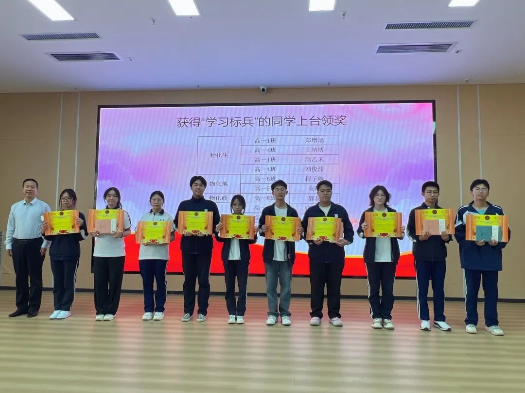 校长助理张维业进行总结讲话。张助理指出,今天的会议不仅仅是为了表彰先进,更是为了直面问题、寻找差距。高中是人生的关键阶段,而高一是打好基础、养成习惯的黄金时期。张助理对大家提出了三点希望和要求:第一,唤醒内驱力,树立目标。第二,严守纪律,重塑习惯。第三,脚踏实地,从基础抓起。今天的表彰大会,既是对优秀者的鼓励,也是对所有人的鞭策。希望大家以期中考试为起点,知不足而奋进,望远山而力行!