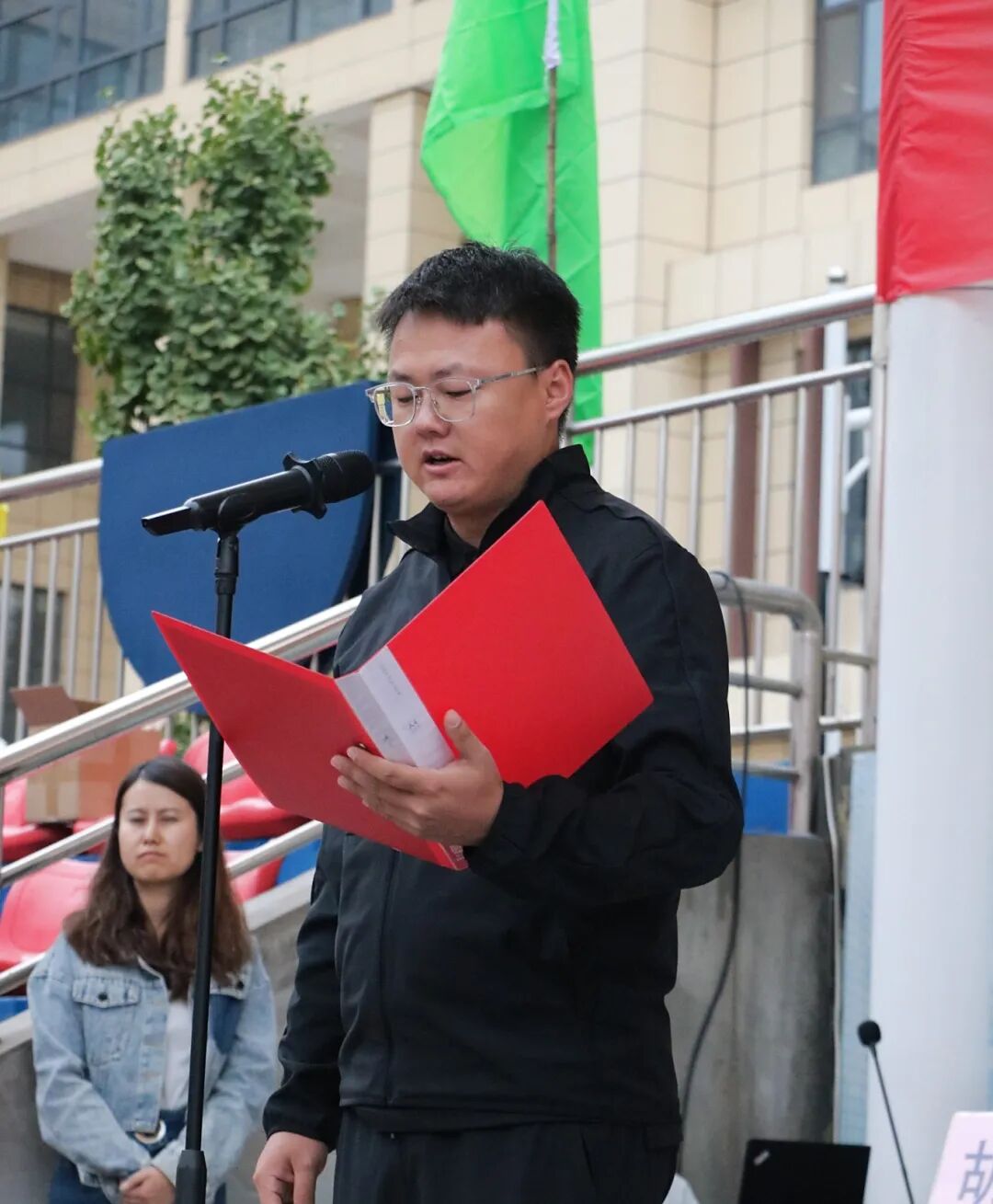 运动员代表张毓琦同学与裁判员代表奎鹏老师分别进行了庄严的宣誓。运动员代表表示将严格遵守比赛规则,以饱满的热情认真参赛,发扬拼搏精神,争取最好成绩。裁判员代表郑重承诺将以严谨的态度、专业的水准,认真履行裁判员职责,尊重每一位参赛选手,准确评判每一场比赛,确保成绩真实有效。运动会总裁判长张鸿俊老师随后宣读了大会纪律。