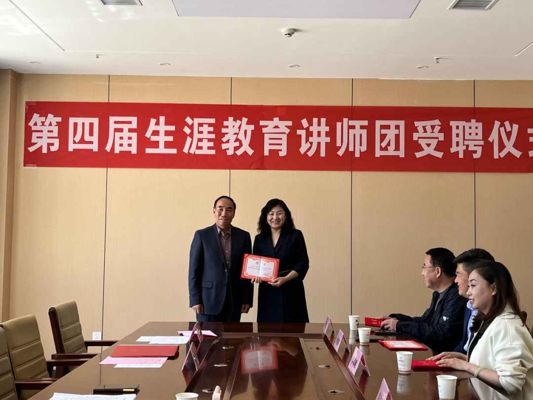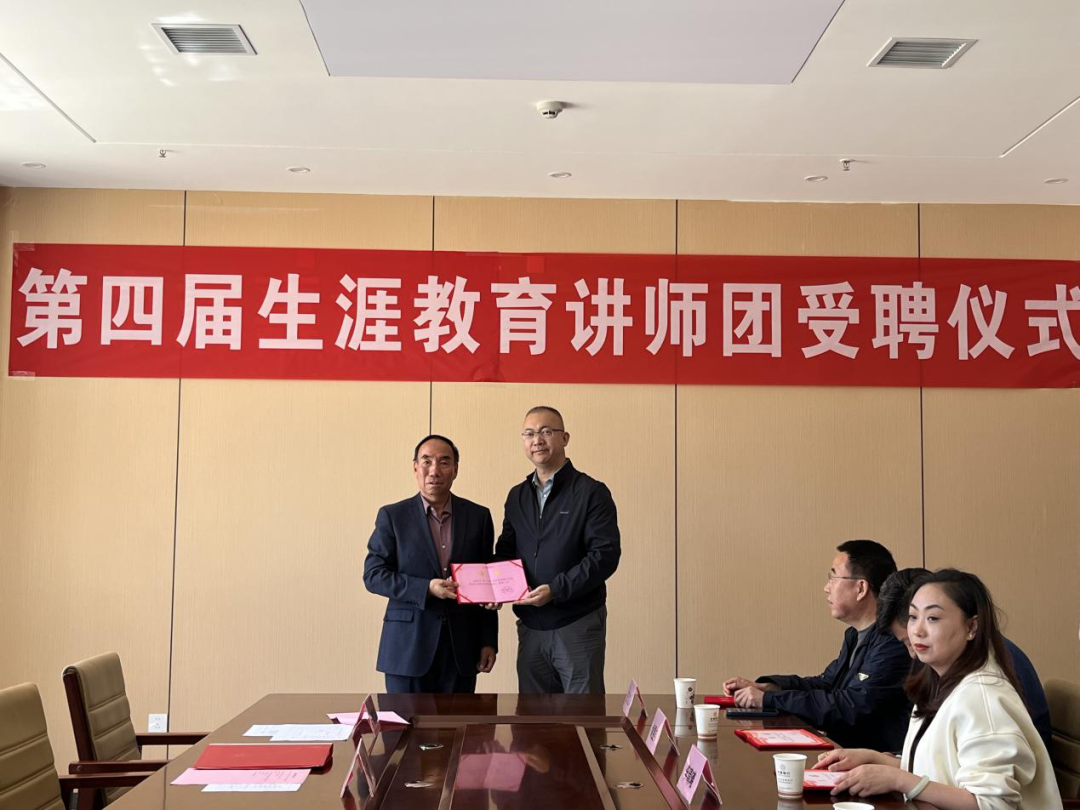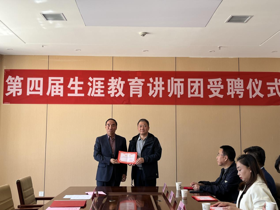 2025年5月10日上午,甘肃嘉威中学在弘远楼六楼会议室举行第四届生涯教育讲师团受聘仪式。学校党总支书记、校长贾金元,校长助理程国山,年级主任王维斌及讲师团成员共同参与。活动以“赋能成长·携手同行”为主题,旨在深化家校协同育人机制,助力学生生涯规划能力提升。