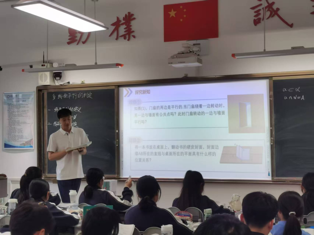 数学课堂:王彦通老师执教《直线与平面平行的判定》,逻辑严谨,通过生活实例导入、动手操作和典例精讲,有效化解抽象定理,培养学生直观想象与逻辑推理能力;王维斌老师主讲的《直线与直线的位置关系》,聚焦平行传递性与等角定理,巧妙利用教室环境实例和实践验证,注重空间思维的培养。
