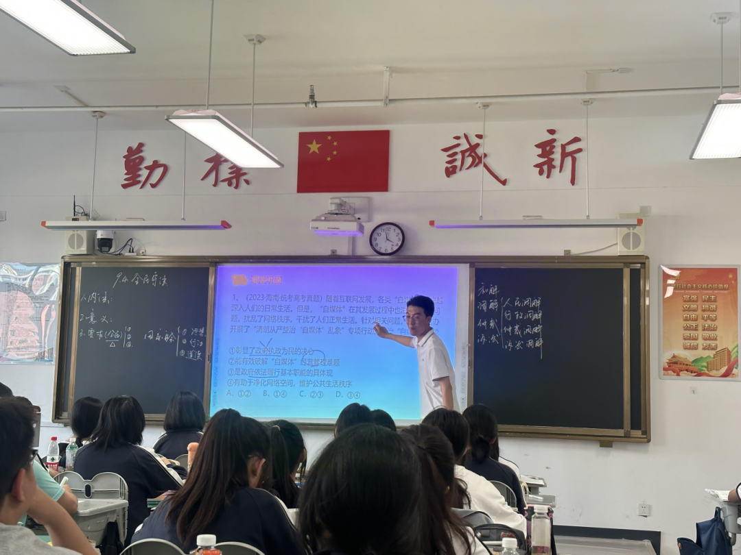 席宗贤老师的政治课《全民守法》设计新颖,以高考誓师发言人被网暴的真实案例切入,贴近生活,有效联系知识点,并创新应用DeepSeek进行现场演示,课堂完整清晰,注重引导学生思考。