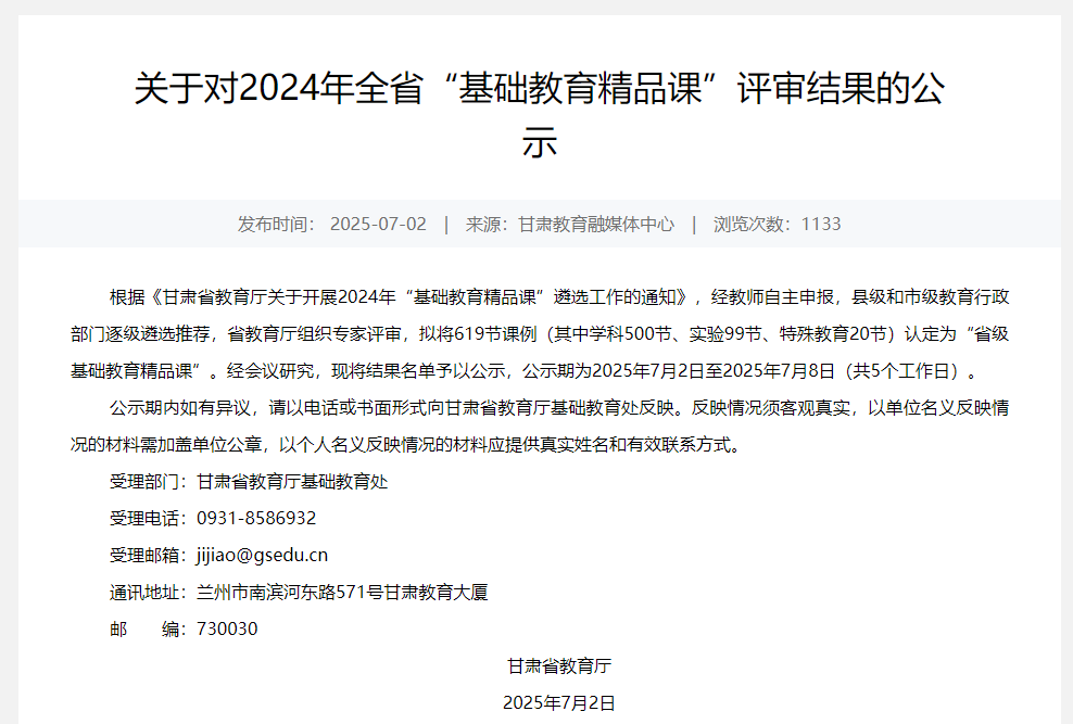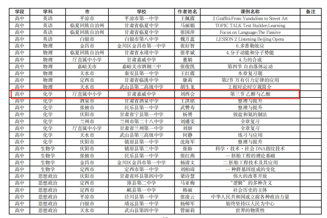 在2024年甘肃省“基础教育精品课”遴选活动中,我校董娟老师的课例《力的合成》、刘西会老师的课例《乙醇与乙酸》入围“省级精品课”。