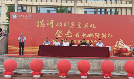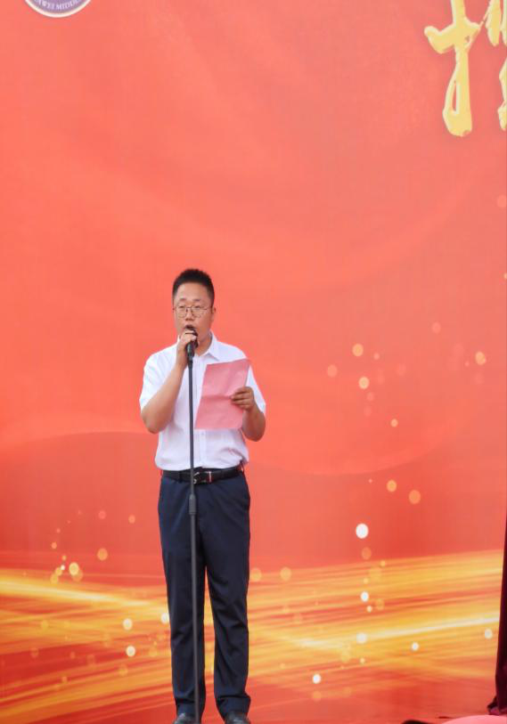 为点燃新高三学子心中火焰,坚定信念,凝聚家校合力,2025年6月25日下午,2026届“走进高三”誓师大会在学校操场隆重举行,此次活动的主题为“揽河砺剑寒窗共赴,登岳长歌鹏路同征”。甘肃嘉威中学党总支书记、校长贾金元,甘肃嘉威集团总校副校长、法人代表丁杰,副校长丁瑶,校长助理程国山、张维业、胡牛子出席典礼。
