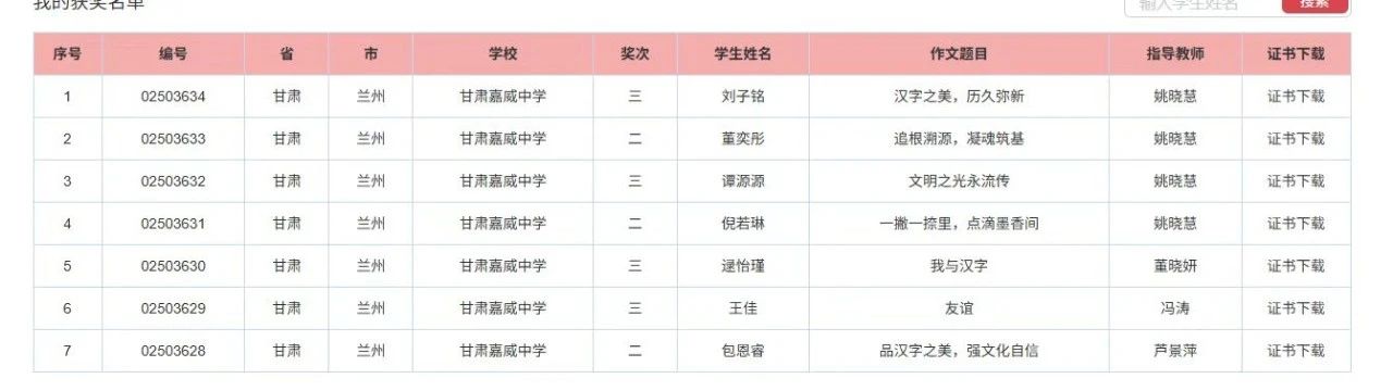 热烈祝贺我校学子在第二十五届世界华人学生作文大赛中取得佳绩!本届大赛中,我校有4名教师和7位学子脱颖而出,斩获全国二等奖3名,全国三等奖4名。
