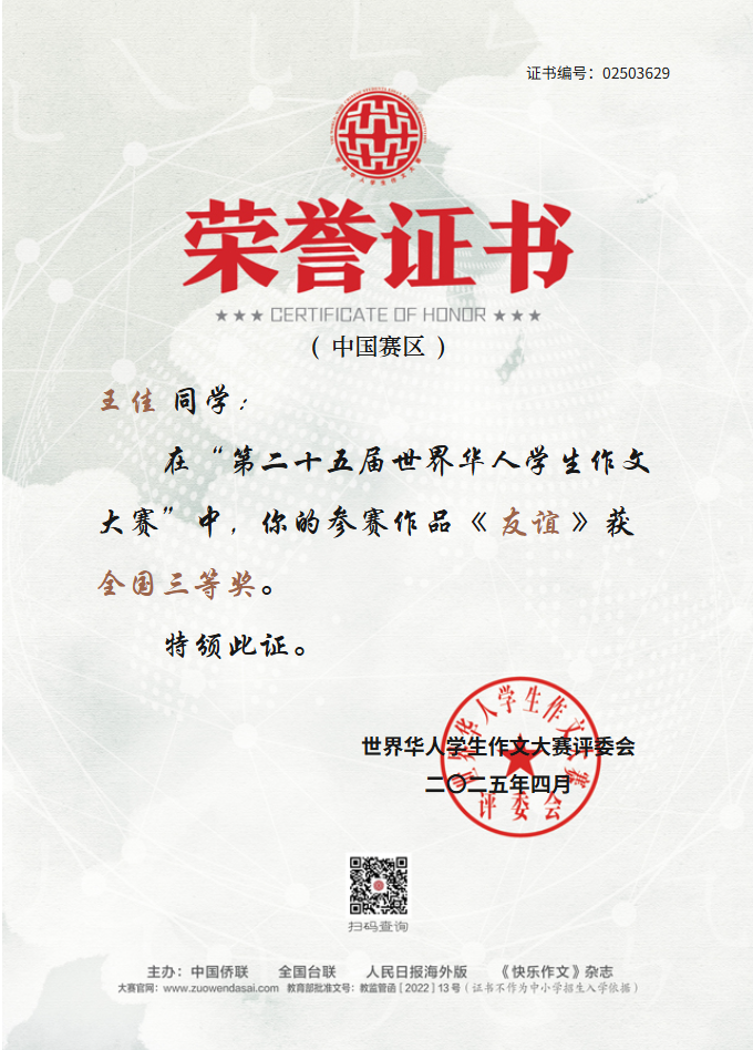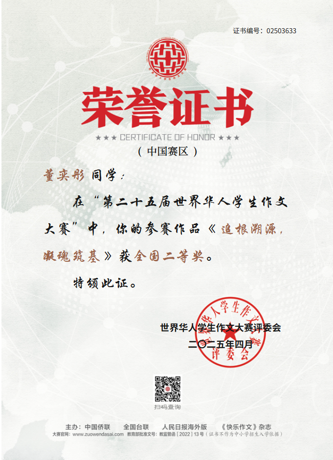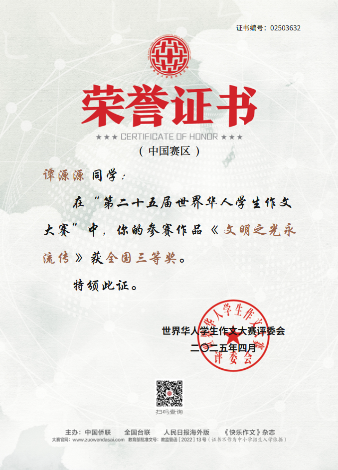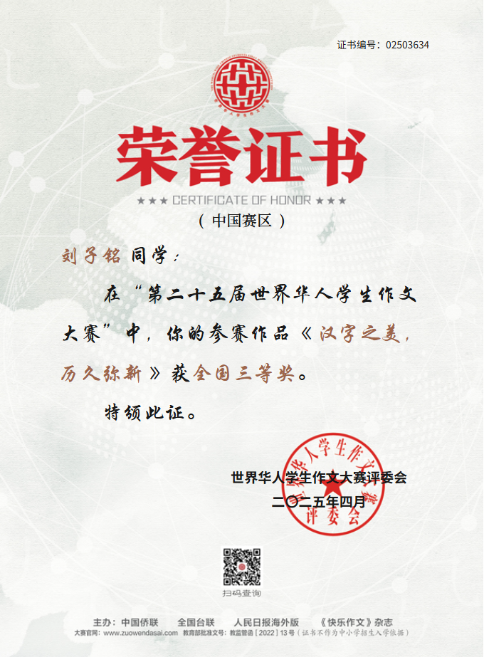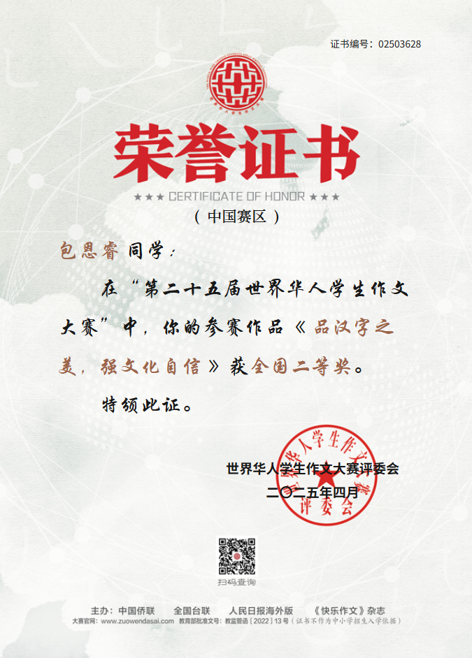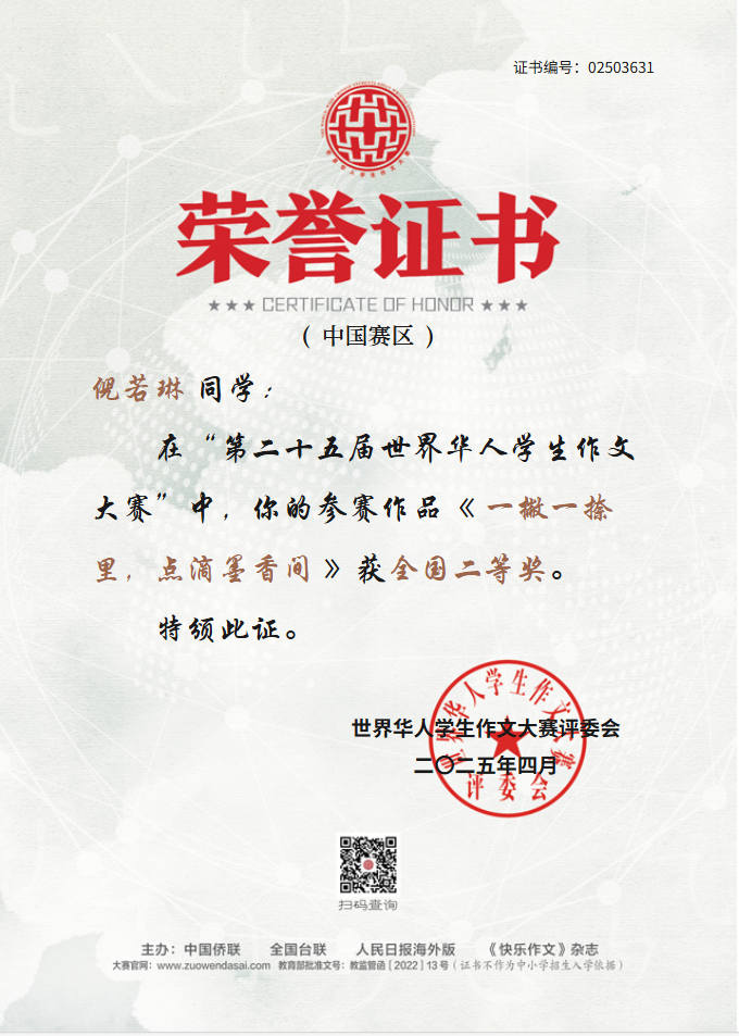 世界华人学生作文大赛是由中国侨联、全国台联、人民日报海外版、《快乐作文》杂志共同主办,迄今已成功举办了25届,是华文教育领域最具影响力的写作赛事之一。我校获奖作品涵盖文化传承、青春成长、家国情怀和时代观察,充分展现了我校学子的人文素养与写作实力。 让我们为获奖师生喝彩,期待更多学子执笔书华章,在文字的世界里遇见更好的自己!